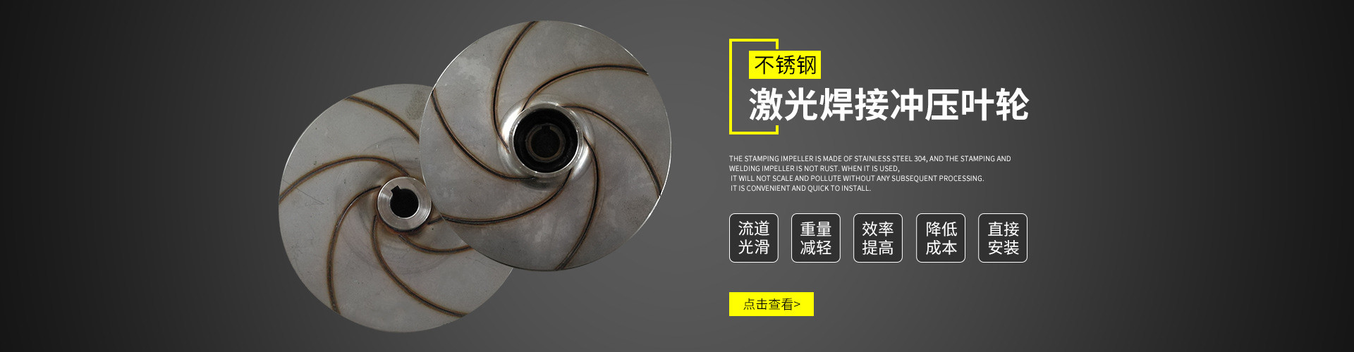 上海易柏樂科技有限公司,是一家專業(yè)致力于不銹鋼(SS304為主)激光焊接加工生產(chǎn)的廠家,目前公司主要產(chǎn)品離心泵葉輪應(yīng)用于各種規(guī)格的管道離心泵。